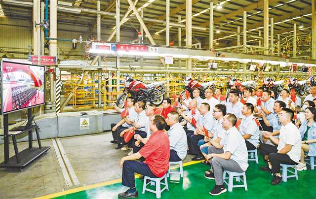7月1日,力帆科技(集團(tuán))股份有限公司,職工們收看慶祝中國(guó)共產(chǎn)黨成立100周年大會(huì)直播。記者 齊嵐森 攝/視覺(jué)重慶