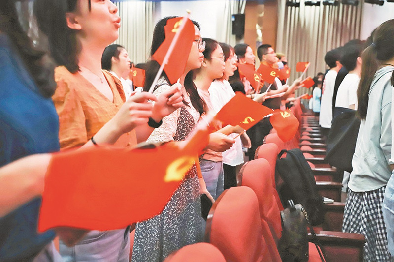 7月1日,西南大學(xué)組織師生收看慶祝中國共產(chǎn)黨成立100周年大會直播。(西南大學(xué)供圖)