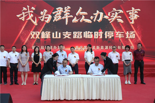 據(jù)了解,長(zhǎng)江村及周邊小區(qū)住戶停車難問題,一直是居民群眾最關(guān)心的問題。為把“我為群眾辦實(shí)事”辦到群眾心坎里,銅元局街道聯(lián)合重慶紫微星新能源科技有限公司,利用長(zhǎng)江村小區(qū)旁閑置地塊,改建成雙峰山支路臨時(shí)停車場(chǎng)。此外,銅元局街道還與相關(guān)單位就銅元社區(qū)食堂等群眾關(guān)切的項(xiàng)目進(jìn)行了簽約。