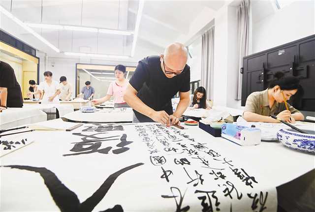 7月1日,四川美術(shù)學(xué)院,師生們正在書(shū)寫(xiě)習(xí)近平總書(shū)記在慶祝中國(guó)共產(chǎn)黨成立100周年大會(huì)上的講話(huà)金句。首席記者 龍帆 攝/視覺(jué)重慶
