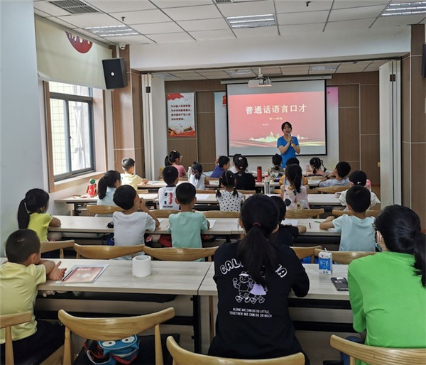 “一言之辯,重于九鼎之寶;三寸之舌,強于百萬雄師。”上午10點,在站東路社區(qū)活動室內(nèi),20余名學生正在認真朗讀,來自重慶仁愛社會工作服務(wù)中心的青年講師正在糾正孩子們的發(fā)音。