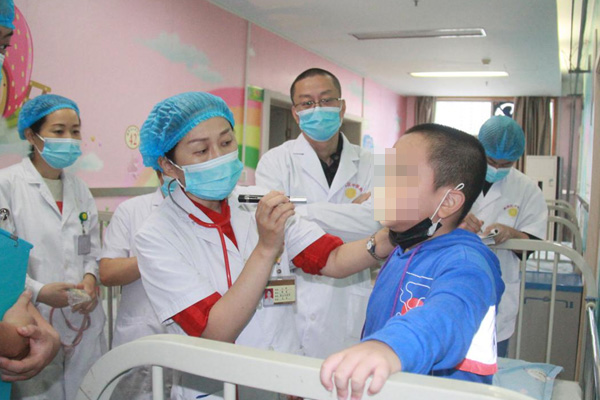兒科團(tuán)隊(duì)查看患者情況。榮昌區(qū)中醫(yī)院供圖