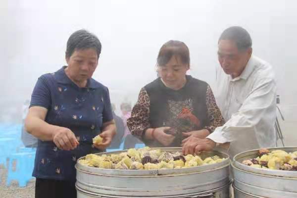 大家品嘗剛從鍋里蒸好的甜糯玉米。天星寺鎮(zhèn)供圖