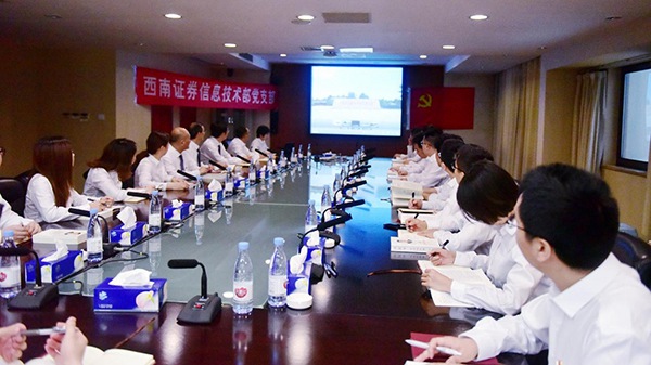 信息技術(shù)部黨支部集中開展黨史學(xué)習(xí)。西南證券供圖
