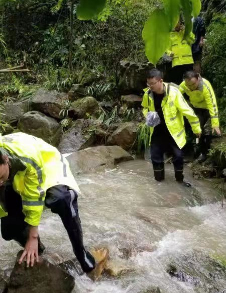 走失后,小文的親戚先是自行組織找尋近1小時無果,隨后向政府求助。當(dāng)天下午14時左右,竹園派出所接到報警,隨后組織周圍村社干部、群眾、民兵等近千人,一同冒雨進(jìn)山搜尋。同時協(xié)調(diào)鎮(zhèn)政府應(yīng)急辦、消防隊在重要路口路段值守。