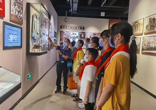 人民網(wǎng)重慶7月9日電 “這些故事都是歷史上真實(shí)發(fā)生的,我們要向這些用鮮血和生命抗?fàn)幍挠⑿壑戮,希望你們認(rèn)真學(xué)習(xí)黨的歷史,弘揚(yáng)紅巖精神”。7月9日,在重慶紅巖革命紀(jì)念館,聽完講解員的解說后,老黨員唐嘏文向身旁的青少年講到。