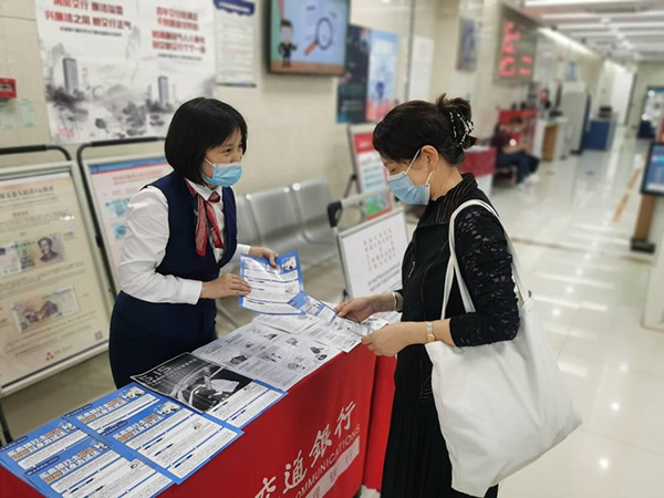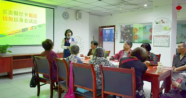 走出行門,進企業(yè)進社區(qū)。交行重慶渝中支行分管負責(zé)人帶隊走進企業(yè),為企業(yè)辦公人員宣傳非法買賣銀行卡相關(guān)金融知識。同時還主動聯(lián)合對口的七星崗、人民路街道社區(qū)等,針對老年人等重點人群進行宣傳,提醒老年人在日常生活中要妥善保管好銀行卡和身份證,不輕信“親朋好友”轉(zhuǎn)借銀行賬戶,不貪圖小惠小利租售銀行賬戶,廢棄不用的銀行卡及時到銀行進行銷戶。