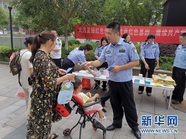 重慶市公安局出入境管理局民警走進社區(qū)做宣傳。新華網(wǎng)發(fā)