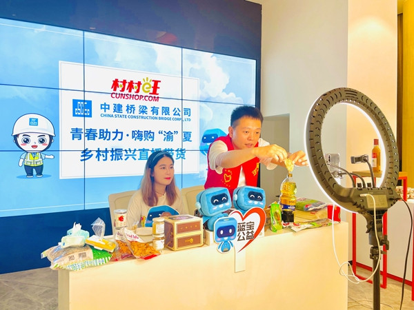 “青春助力·嗨購‘渝’夏”鄉(xiāng)村振興直播帶貨活動,依托“村村旺”市級農(nóng)村電商綜合服務(wù)平臺,為消費扶農(nóng)賦能。來自中建橋梁的4名青年志愿者,以“一主播+一青年”的形式,助銷重慶各區(qū)縣特色農(nóng)產(chǎn)品。