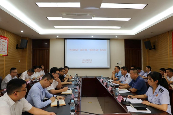 彭水縣稅務(wù)局聯(lián)合人民銀行、銀保監(jiān)等部門(mén)召開(kāi)銀稅互動(dòng)專(zhuān)題推進(jìn)會(huì)。王茜攝