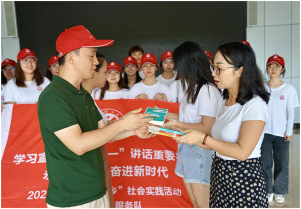 團隊成員向海龍村村委會贈書。西南政法大學供圖