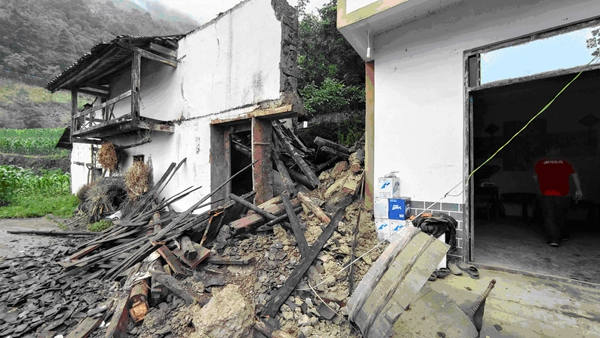 危巖崩塌造成村民房屋受損。川東南地質(zhì)隊供圖。