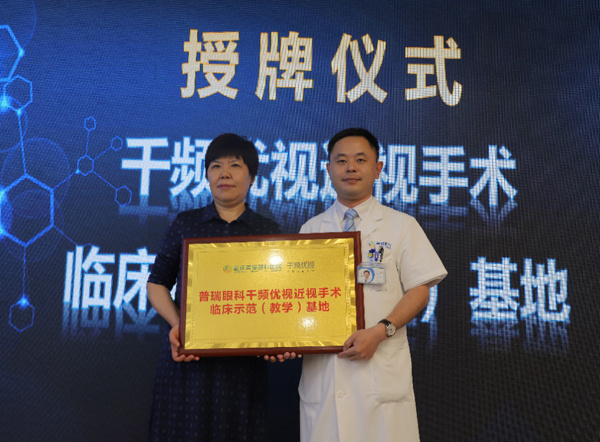 屈光?浦魅稳~進(jìn)帶來了全眼定制近視手術(shù)成果匯報,他介紹,重慶普瑞眼科醫(yī)院近視矯正個性化定制技術(shù)已經(jīng)邁入3.0時代,即以更高級別的德國阿瑪仕1050RS全激光設(shè)備和千頻飛秒激光手術(shù)臨床操作規(guī)范,為患者帶來更優(yōu)的手術(shù)體驗與更佳的視覺質(zhì)量。隨后,普瑞眼科集團(tuán)醫(yī)院護(hù)理部主任胡全芳為重慶普瑞眼科醫(yī)院授牌,授予“千頻優(yōu)視近視手術(shù)臨床示范(教學(xué))基地”。(重慶普瑞眼科醫(yī)院 供稿)