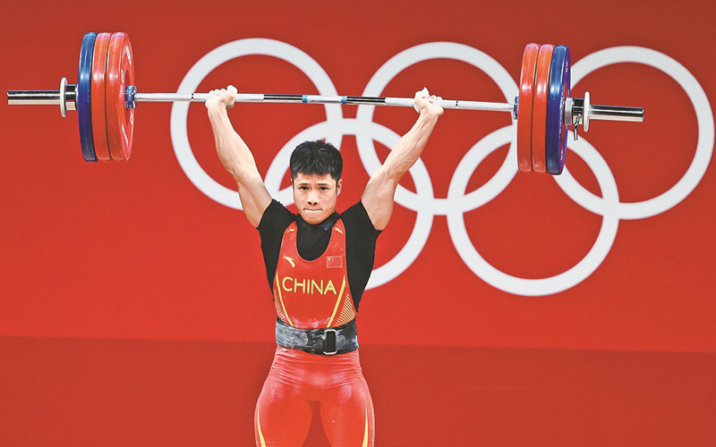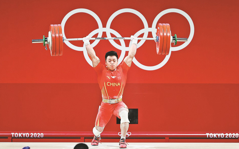 7月25日,在東京奧運(yùn)會舉重男子61公斤級決賽中,中國選手李發(fā)彬奪得冠軍。
