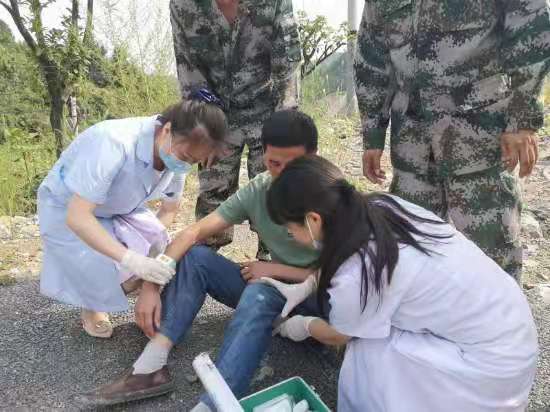 上午9點(diǎn),姜家鎮(zhèn)鎮(zhèn)長羅躍宣布綜合應(yīng)急演練正式開始。此次演練以姜家鎮(zhèn)某段鄉(xiāng)村道路因近日強(qiáng)降雨引發(fā)局部山體滑坡,導(dǎo)致路面中斷,造成三輛車追尾事故,有人員受傷作為背景。鎮(zhèn)值班人員收到110報(bào)警中心情況通報(bào)后,逐級向上報(bào)告。鎮(zhèn)政府決定立即啟動應(yīng)急響應(yīng),現(xiàn)場成立指揮部,由鎮(zhèn)長羅躍任指揮長,黨委專職副書記羅慶遠(yuǎn),人武部長、副鎮(zhèn)長曾勇濤任副指揮長。指揮長一聲令下,綜合協(xié)調(diào)組、警戒疏散組、現(xiàn)場搶險(xiǎn)組、后勤保障組、善后工作組分頭展開搶險(xiǎn)救災(zāi)工作。