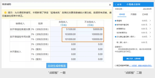 重慶市稅務局貨物與勞務稅處副處長包剛介紹:“2021年小規(guī)模納稅人繼續(xù)享受增值稅減按1%征收的優(yōu)惠政策,此次上線的‘點即報’二期能幫納稅人自動計算享受,且以移動辦稅模式為主,適應更多操作場景,滿足更多不同需求的納稅人!