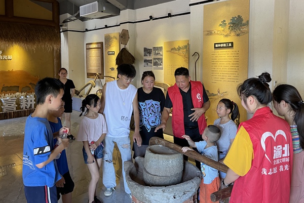 志愿者為孩童講解農(nóng)耕用具。渝北區(qū)委宣傳部供圖
