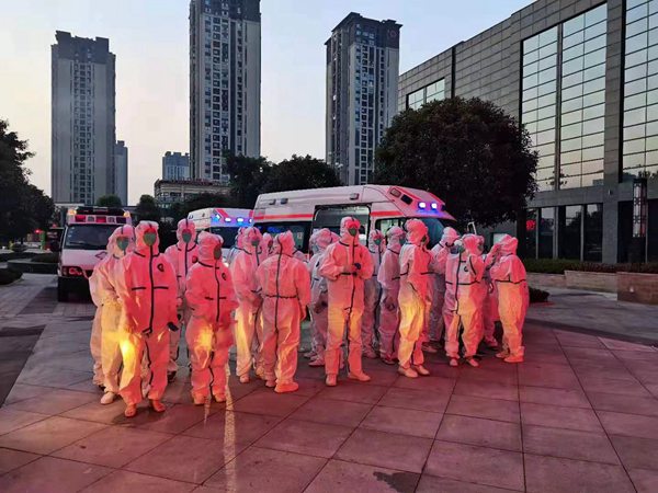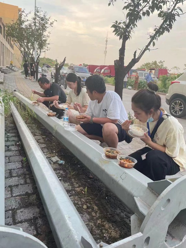 醫(yī)護人員休息間隙抓緊時間吃飯。江津區(qū)委宣傳部供圖