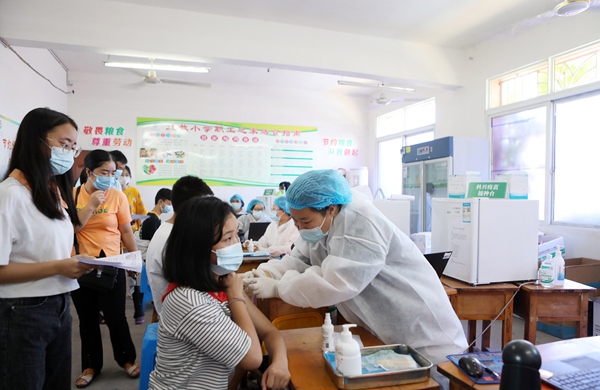 醫(yī)務(wù)人員為15歲至17歲學(xué)生接種新冠病毒疫苗。陳仕川攝