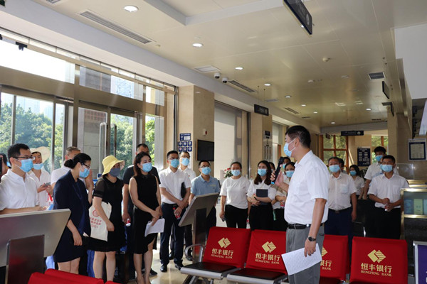 7月28日,創(chuàng)建全國(guó)文明城區(qū)專家指導(dǎo)組一行走進(jìn)恒豐銀行重慶江津支行營(yíng)業(yè)網(wǎng)點(diǎn),開展全國(guó)文明城區(qū)創(chuàng)建工作的現(xiàn)場(chǎng)指導(dǎo)教學(xué)工作。江津區(qū)金融發(fā)展服務(wù)中心、轄內(nèi)銀行業(yè)金融機(jī)構(gòu)相關(guān)負(fù)責(zé)人參加本次現(xiàn)場(chǎng)教學(xué)。