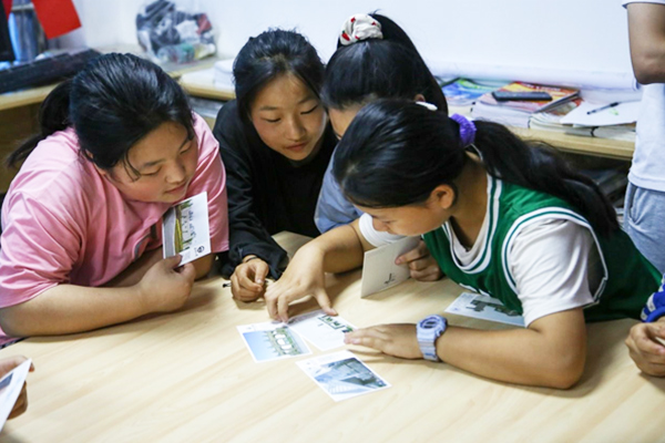實(shí)踐團(tuán)成員與青少年兒童一起設(shè)計(jì)手工剪紙。黃珩釧攝