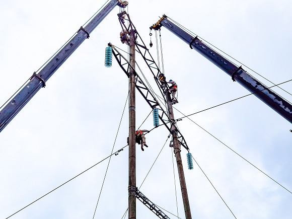 國網(wǎng)重慶電力員工在進行桿上檢修作業(yè)。通訊員 劉遠平 攝