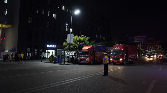 市商務(wù)委指定專人24小時收集運輸車輛的通行時間、路線及車牌等準(zhǔn)確信息,及時發(fā)送給市交巡警總隊,保障所有運輸車輛不需去辦證,全天也能順利通行。