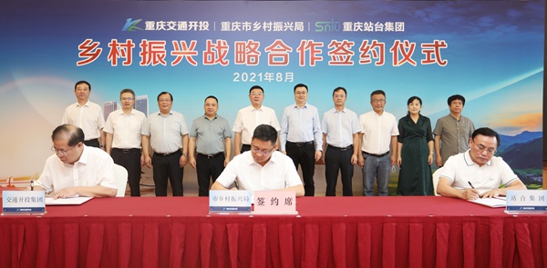 交通開投集團(tuán)與市鄉(xiāng)村振興局、站臺(tái)集團(tuán)簽訂《服務(wù)鄉(xiāng)村振興戰(zhàn)略合作協(xié)議》。交通開投集團(tuán)供圖