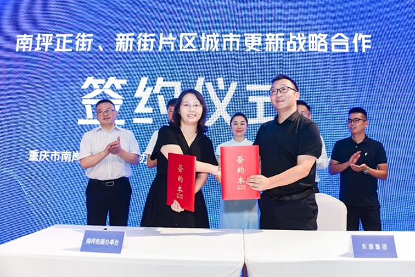 人民網(wǎng)重慶8月6日電 8月4日,南岸區(qū)南坪街道辦事處與東原集團(tuán)舉行城市更新戰(zhàn)略合作簽約儀式。雙方將把南坪正街、新街片區(qū)打造成為南岸區(qū)舊城更新、文旅融合項(xiàng)目中的一張名片,彰顯南坪街道文化魅力與活動(dòng)創(chuàng)意。