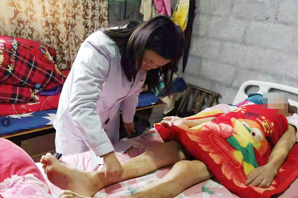 劉美婷到患者家中進行康復治療。江北區(qū)中醫(yī)院供圖