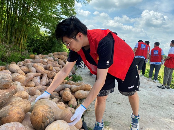 當(dāng)天,志愿者團(tuán)隊(duì)與當(dāng)?shù)剞r(nóng)戶共計(jì)搶收20余噸農(nóng)貨。隆興鎮(zhèn)1000畝的蜜本南瓜已進(jìn)入成熟期,預(yù)計(jì)采摘將持續(xù)至8月底。