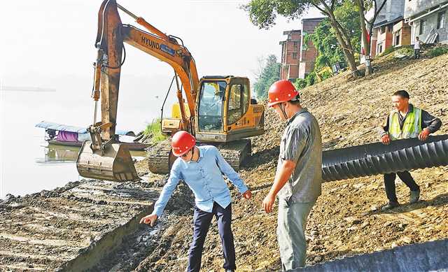 八月十日,銅梁區(qū)高樓鎮(zhèn),涪江河岸河堤工程正在抓緊施工。該項目是重慶市地質(zhì)災(zāi)害災(zāi)后重建項目之一,完工后,可消除場鎮(zhèn)臨江房屋的安全隱患。通訊員 趙武強 攝\視覺重慶