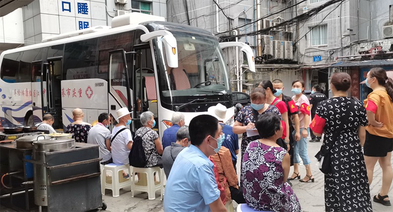 為方便居民接種疫苗,近日,我區(qū)組織新冠疫苗接種車來(lái)到各社區(qū),將疫苗接種服務(wù)送到居民家門口。圖為接種車開到文龍街道石佛崗社區(qū),居民們正有序排隊(duì)接種疫苗。