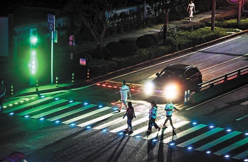 8月13日,西部(重慶)科學城高龍大道與金瑞路交叉口,智慧斑馬線上的LED燈帶,為城市帶來亮點。
