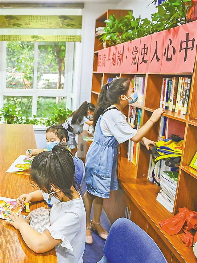 8月13日,重慶高新區(qū)曾家鎮(zhèn)龍臺社區(qū)服務(wù)中心,小朋友正在閱覽室看書。