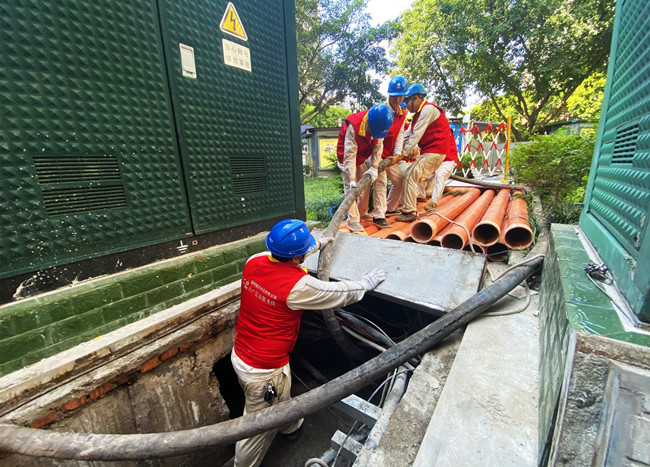 人民網(wǎng)重慶8月17日電 (劉政寧)8月17日,在渝北區(qū)加州花園小區(qū),國網(wǎng)重慶市北供電公司工作人員正在實(shí)施改造工程的過渡方案,對該小區(qū)2號(hào)開閉所電源臨時(shí)進(jìn)行切換,保障小區(qū)在供電設(shè)施改造期間對居民用戶的持續(xù)供電不間斷。