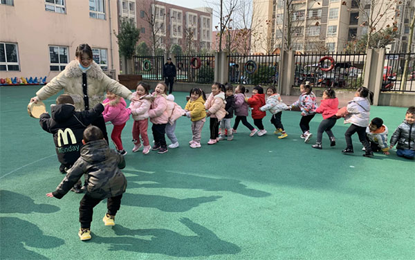 雙福幼兒園雙溪分園師生在園內(nèi)快樂游戲