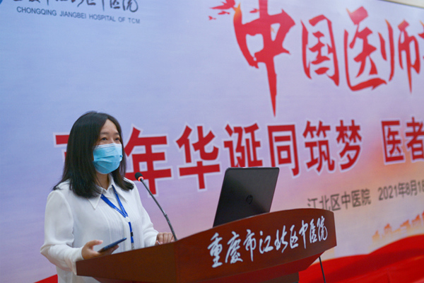 重慶市江北區(qū)中醫(yī)院黨委書記凌玲宣讀表彰名單。醫(yī)院供圖