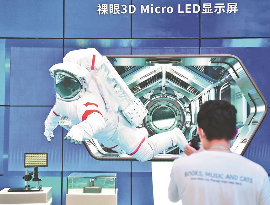 八月二十二日,重慶國(guó)博中心2021智博會(huì)現(xiàn)場(chǎng),“宇航員”從康佳電子帶來(lái)的裸眼3D顯示屏中“飛出”。