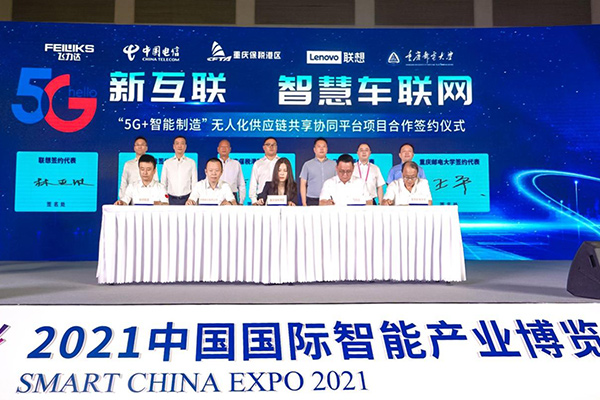 人民網(wǎng)重慶8月23日電 8月23日,在2021中國國際智能產(chǎn)業(yè)博覽會(huì)上,由重慶兩路寸灘保稅港區(qū)管委會(huì)、中國電信重慶公司、聯(lián)想集團(tuán)、飛力達(dá)、重慶郵電大學(xué)合作打造的“5G+智能制造”無人化供應(yīng)鏈共享協(xié)同平臺(tái)正式簽約發(fā)布。