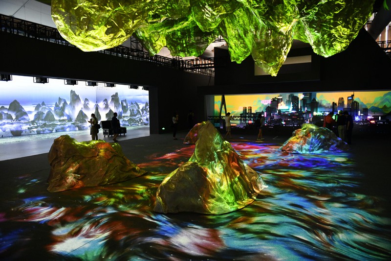 位于禮嘉智慧公園的《畫游千里江山——故宮沉浸藝術(shù)展》展覽現(xiàn)場(chǎng)。鄒樂攝