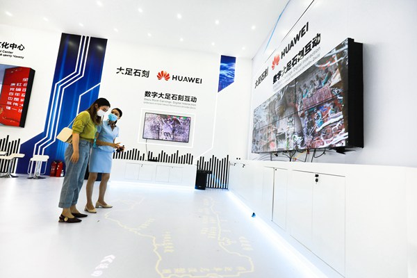 在智慧旅游展區(qū),大足石刻研究院還與華為合作,把歷史悠久的大足石刻和光影雷達互動、3D數字圖書館、MR交互等數字新技術融合,為市民帶來不一樣的智慧旅游新體驗。