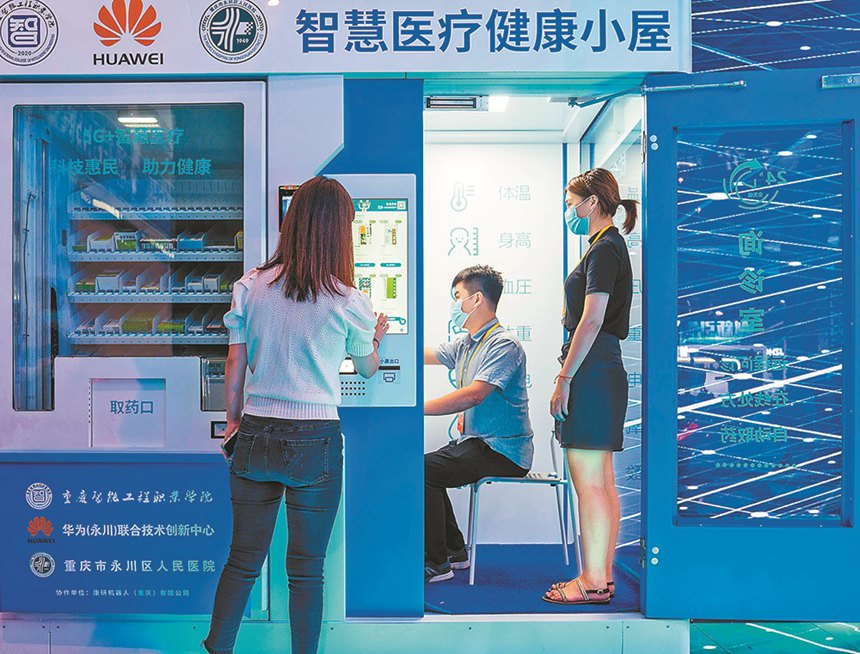 8月23日,參觀嘉賓在智慧醫(yī)療健康小屋體驗遠(yuǎn)程問診和現(xiàn)場取藥。 記者 崔力 攝/視覺重慶