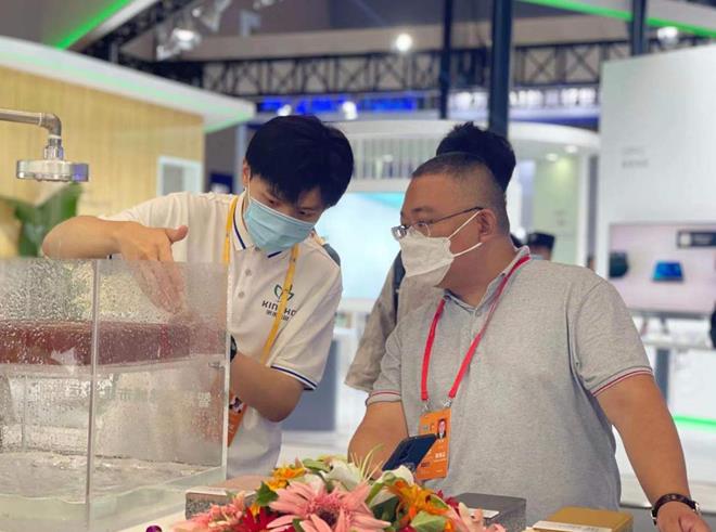 工作人員為嘉賓講解智能產(chǎn)品。親禾集團供圖
