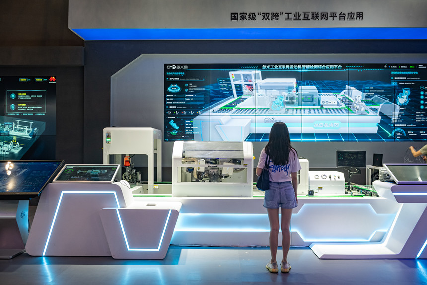 2021智博會把推動工業(yè)互聯(lián)網(wǎng)發(fā)展貫穿于“會、展、賽、論”全環(huán)節(jié),并專題設(shè)置了2萬平方米工業(yè)互聯(lián)網(wǎng)展區(qū),“重慶館”重點以工業(yè)互聯(lián)網(wǎng)為主題,場景化呈現(xiàn)數(shù)字孿生工廠、柔性生產(chǎn)線等技術(shù)場景。
