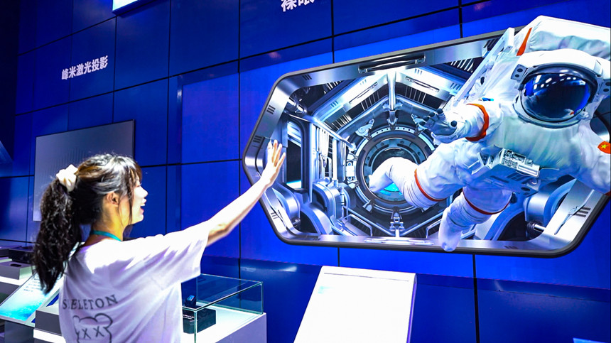 2021智博會上,市民體驗裸眼3D micro LED顯示屏。鄒樂攝