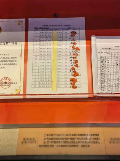 在重慶中國三峽博物館參展的《云隘村建卡貧困戶分紅花名冊》。劉宗娟攝