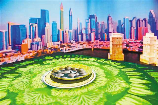 8月23日,在禮嘉智慧公園智慧藝趣館,空盤上出現(xiàn)了美食的投影,周圍的墻面也出現(xiàn)了與之對(duì)應(yīng)的地域風(fēng)光影像。記者 張錦輝 攝/視覺重慶