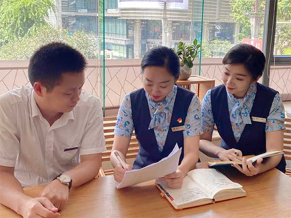 服務(wù)無(wú)止境,學(xué)習(xí)不止步。作為廳堂的服務(wù)帶頭人,曹珍珍在團(tuán)隊(duì)中營(yíng)造了濃厚的學(xué)習(xí)氛圍,每天晨會(huì),她都會(huì)抽檢團(tuán)隊(duì)人員進(jìn)行財(cái)經(jīng)知識(shí)分享;在每周特定學(xué)習(xí)日、夕會(huì)上帶領(lǐng)團(tuán)隊(duì)共同學(xué)習(xí)業(yè)務(wù)知識(shí)、市場(chǎng)分析及財(cái)富管理相關(guān)書(shū)籍。