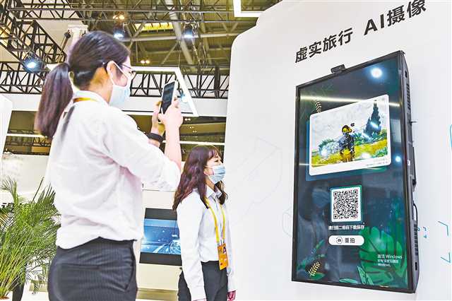 “在最喜歡的畫里跟最喜歡的藝術(shù)家同框,真是不枉此行!”在華為展臺搭建的智慧文旅場景中,一位女士點擊名畫《星空》,站在“虛實旅行”AI攝像頭前與作者梵高一起在屏幕上被定格成畫中風(fēng)景。